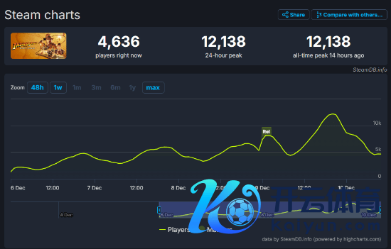 MachineGames的《夺宝奇兵:陈旧之圈》现已崇拜发售,据SteamDB数据败露,松手发稿前,游戏在Steam平台的同期在线东谈主数峰值已达到12138东谈主,与12月9日比拟多加多了四千余东谈主,瞻望将来还会陆续增长。