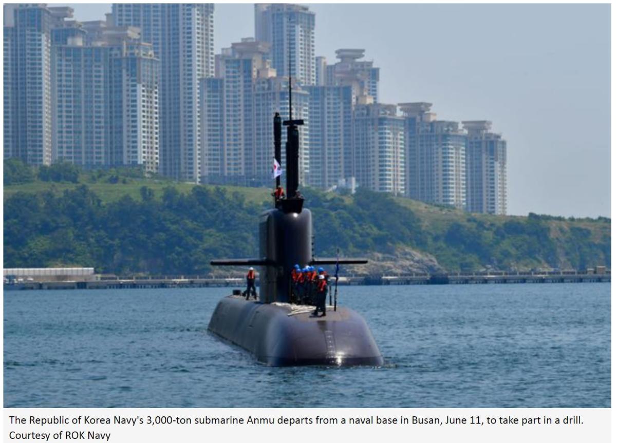 △贵寓图:韩国3000吨级新式潜艇“安武”号干与演习(图自《韩国时报》网站)