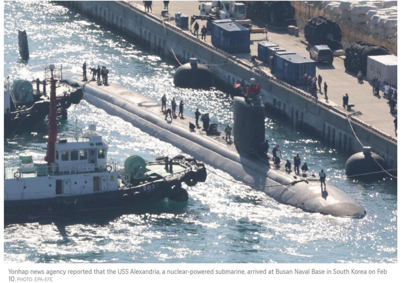 近日,好意思国舟师“亚历山德里亚”号核潜艇抵达韩国釜山港休整。